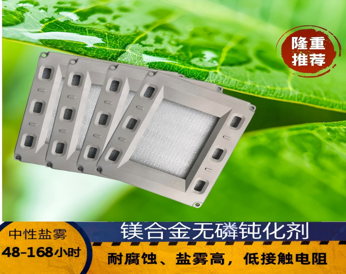 镁合金材料具有质轻、硬度高的特性,在机械行业中具有独特的应用效果,但是镁合金的耐腐蚀性比较差,因此必须进行表面处理;本公司拥有的镁合金表从清洗、蚀刻、表调、钝化、封闭全面配套的药剂,处理镁合金不仅耐腐蚀性大大提高,而且具有提高油漆附着力。本药剂广泛使用在镁合金的航天、汽车、自行车、电子产品的配件中。