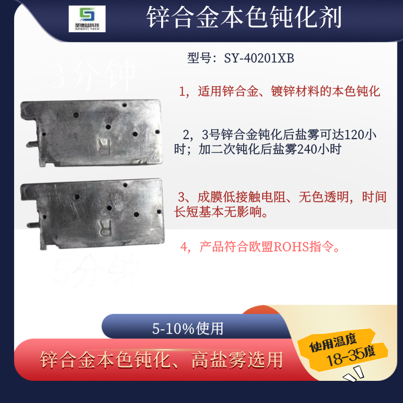 【耐腐蚀】锌合金三价铬钝化剂,裸膜中性盐雾测试可达到48-300小时。